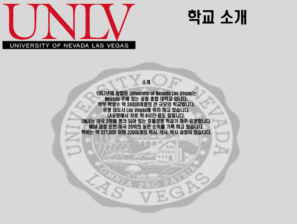 UNLV 학교 소개 입니다.