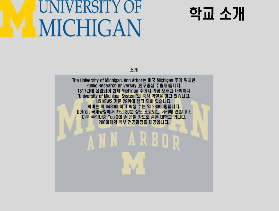 UMich 학교 소개 입니다.